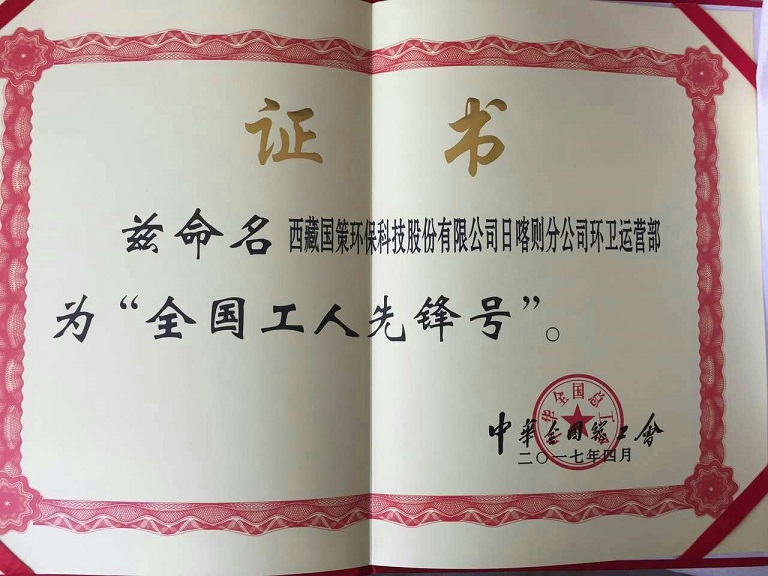日前,全國總工會召開“五一”新聞發(fā)布會, 通報了一批“2017年全國工人先鋒號”。西藏國策環(huán)??萍脊煞萦邢薰救湛t分公司運營部全體成員在日常工作中勞心勞力、風雨無阻、踐行無私奉獻的城市“美容師”精神,被授予“2017年全國工人先鋒號”,是我司首獲此殊榮。