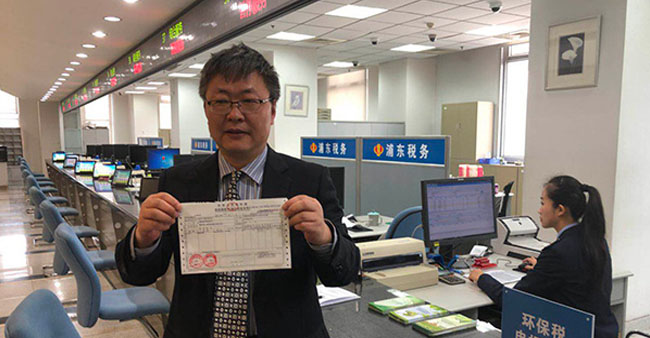 全國首張環(huán)境保護稅稅票今天上午在上海開出