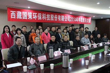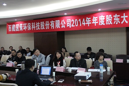 西藏國策環(huán)??萍脊煞萦邢薰?014年度年度股東大會在成都召開,董事會秘書楊偉強(qiáng)主持會議。董事長兼總經(jīng)理陳鴻、副董事長范津濤、副總經(jīng)理幸川、財(cái)務(wù)總監(jiān)趙永花、證券部經(jīng)理張麗等公司董事及核心成員出席本次會議。