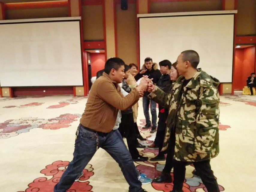 (圖為團隊拓展活動“齊眉棍”)
